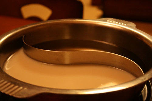 しゃぶしゃぶのだしは、こんぶ、豆乳、かつを、赤辛の4つから選べます