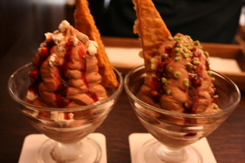私はビターチョコのジェラートに、さくらんぼとクッキークランチ、ピスタチオをチョイス