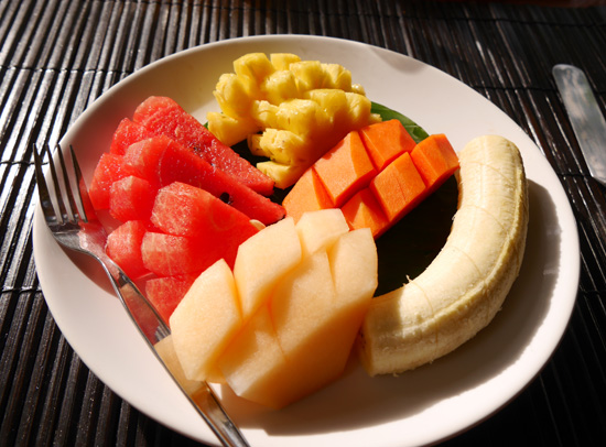 どの朝食にもフルーツの盛り合わせが付きます